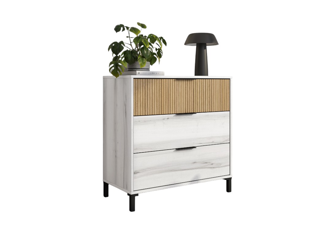 Comoda 3 cajones 80x40x81 cm. Tirador metal negro